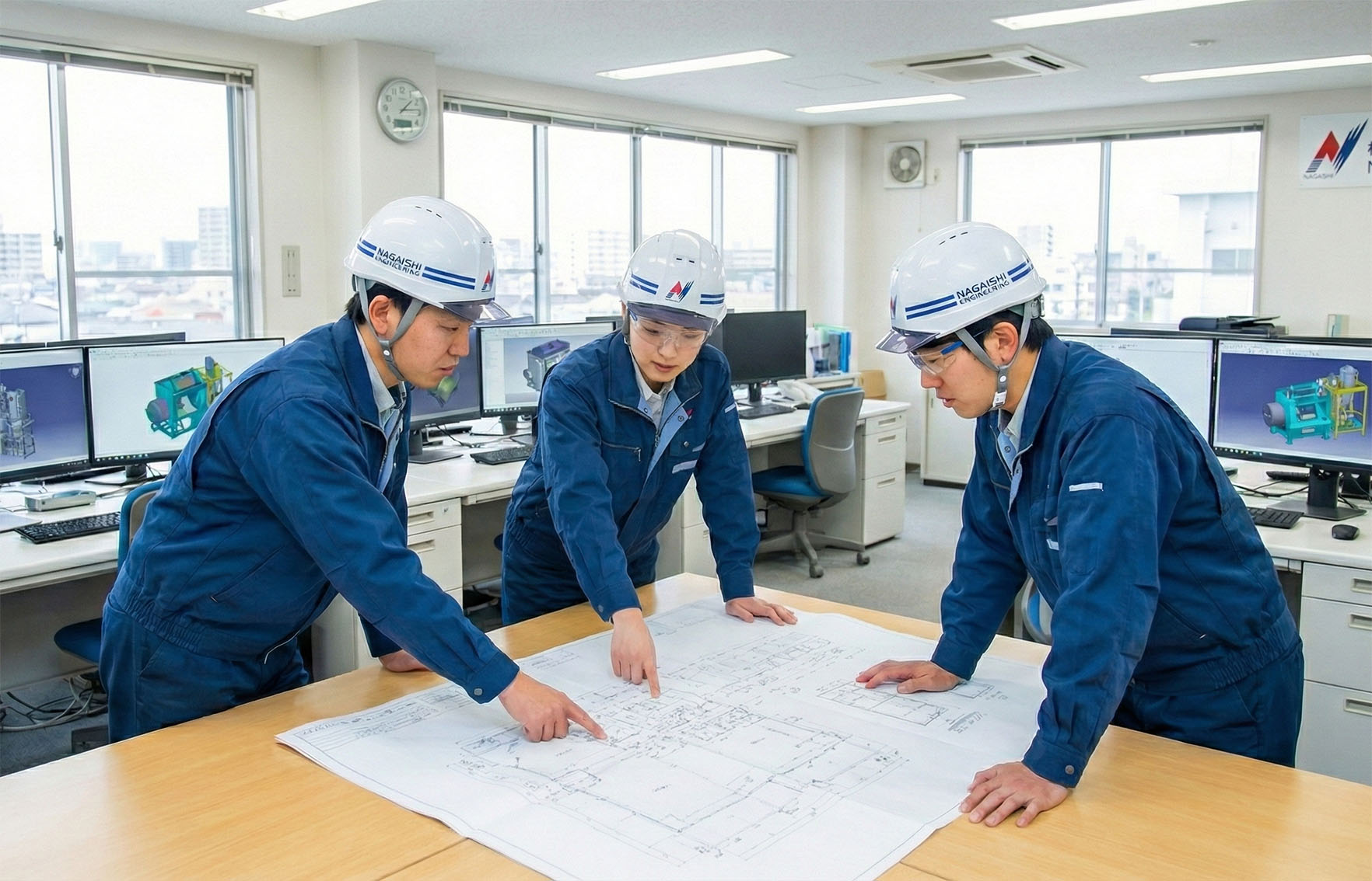 お客様と当社の営業担当および技術部門責任者によって打ち合わせ~仕様の確定~基本設計までが行われます。
